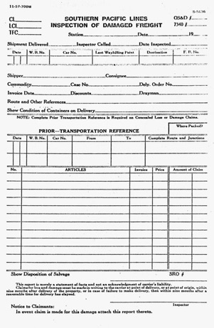Here is an example of a Damaged Freight Inspection form, dated 1957.