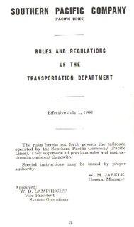 (Two different titles in two different places) effective 5/15/92 which covers the entire system including the former DRGW and the Cotton Belt. The original is in a three ring binder with a red and gold Southern Pacific Lines herald slipped into the pocket on front.