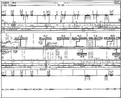 Track Charts were produced by the railroad engineering department. They came in a bound binder, and had so much detail of the track on them that a full sheet was only able to show maybe FIVE miles of actual track distance. Some track charts are only 8.5 inches long and cover five miles. For comparison example, the representation of Sacramento requires about 1.5 inches.