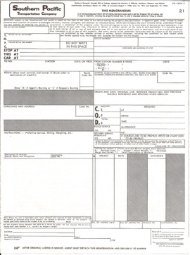 Below are examples of forms and documents mostly of interest to SP enthusiasts. They illustrate that before the days of “corporate image” created by graphics consultants, in which typography throughout a corporation would be squeezed into a single mold, different forms even in the same department could have different looks. They could and did change from time to time, and at any one time, a form might well not have the same typography.