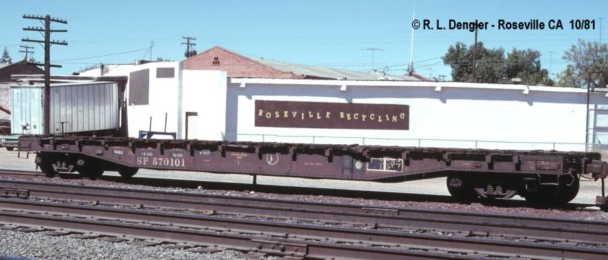The car is a 50 foot flat/gon copper anode flat. The SP had several interesting series' of flats (and boxes) to assigned carry this unusual commodity. The copper anode slabs are held in cradles at the ends of the cars as opposed to coils. See the following page: