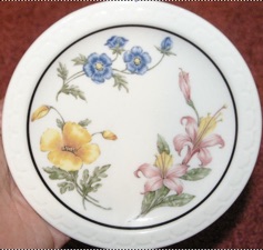 Prairie-Mountain Wildflowers dinner ware was a pattern manufactured for Southern Pacific by Syracuse or Onandaga Pottery Co. (a company absorbed by Syracuse) and Shenango Pottery Co. They were either Econo-Rim, or Rolled Rim. It was used as the standard dining car service china from 1931 until the advent of Amtrak service.